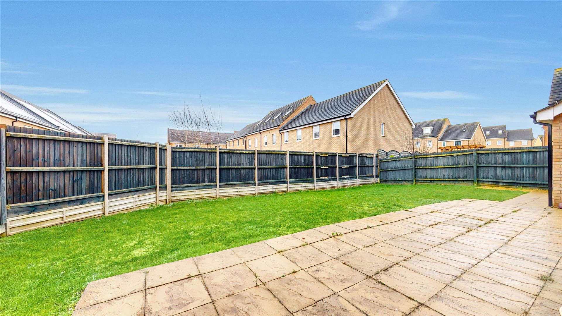 Rear width patio area, mainly laid to lawn with outside tap. Gated access to front.