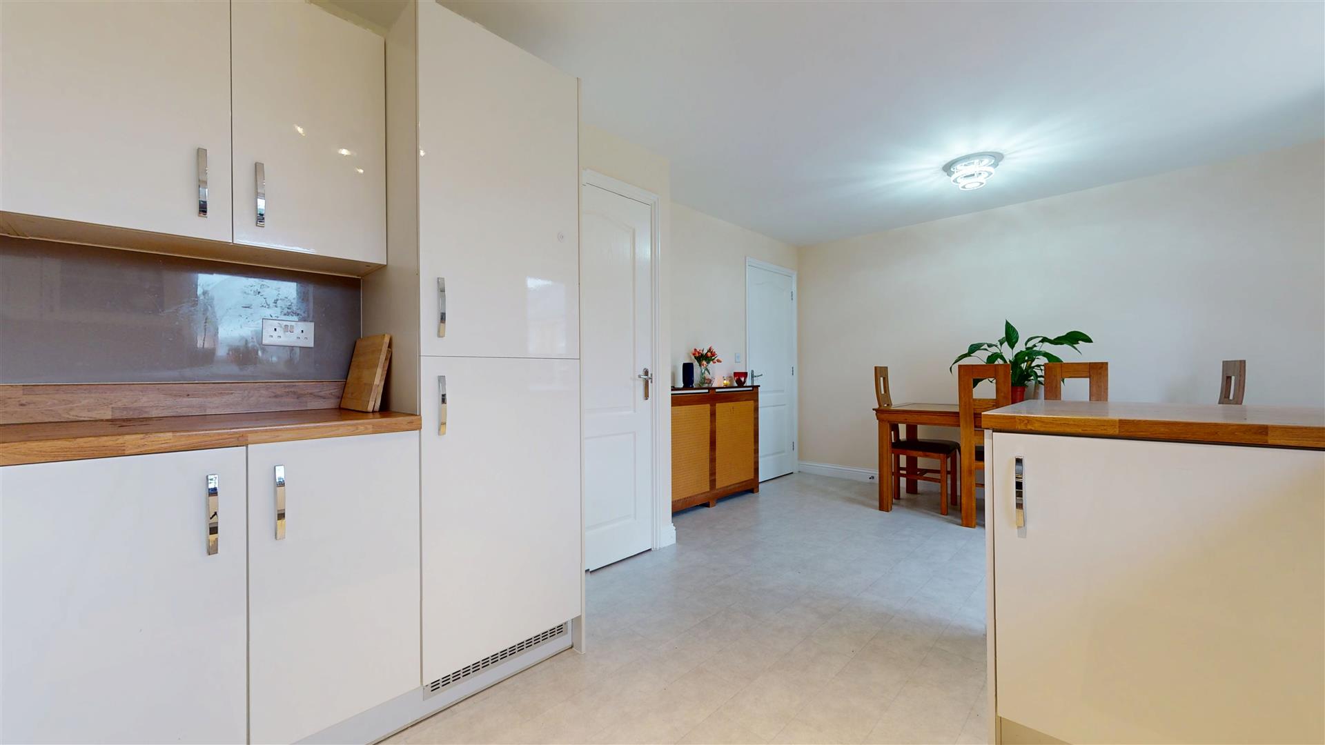 Double glazed window and French doors to rear. Fitted with wall and base units with worksurfaces. One and half bowl sink drainer and mixer tap. Electric grill oven and four ring hob with extractor hood over. Integral fridge freezer, dishwasher and washing machine. Wall mounted combination boiler. Radiator with cover.