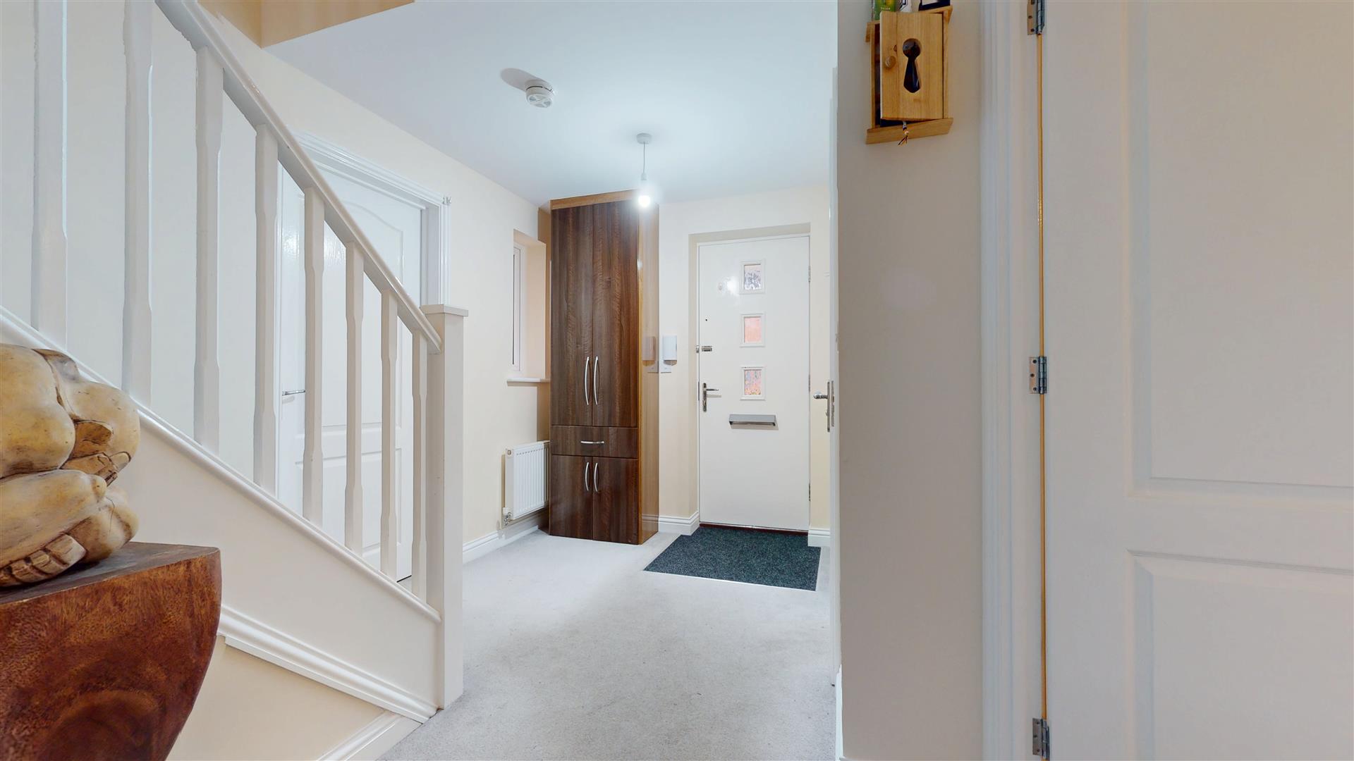 Composite double glazed door to front. Double glazed window to side. Radiator. Stairs to first floor landing. Understairs storage cupboard. Fitted shoe storage cupboard.