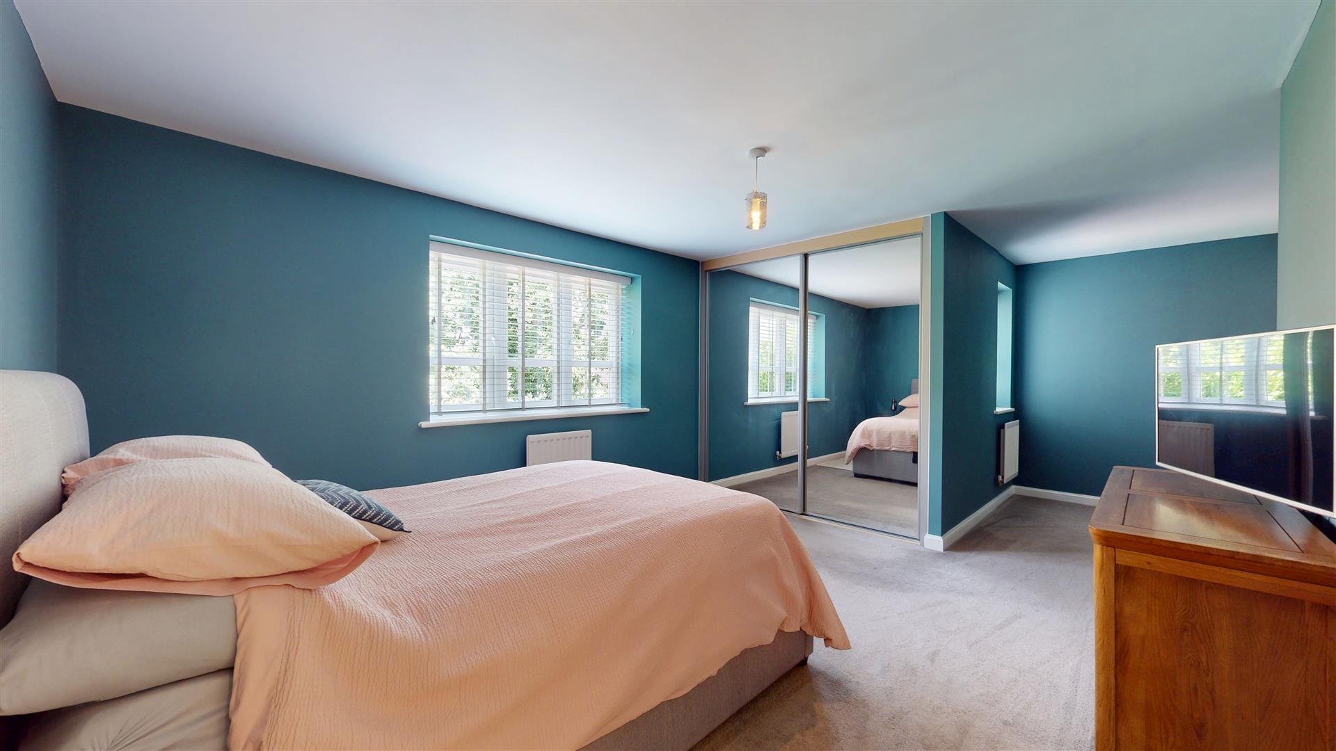Double wardrobe with mirror sliding doors. Skimmed ceiling. Two double glazed window to front. Two radiators.