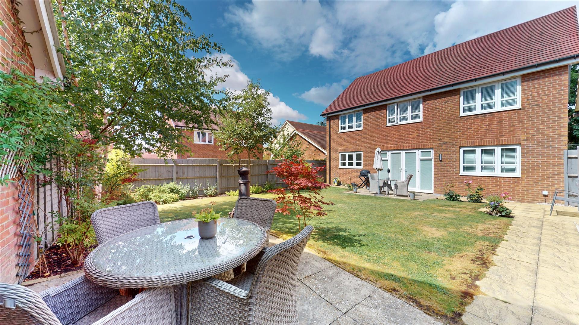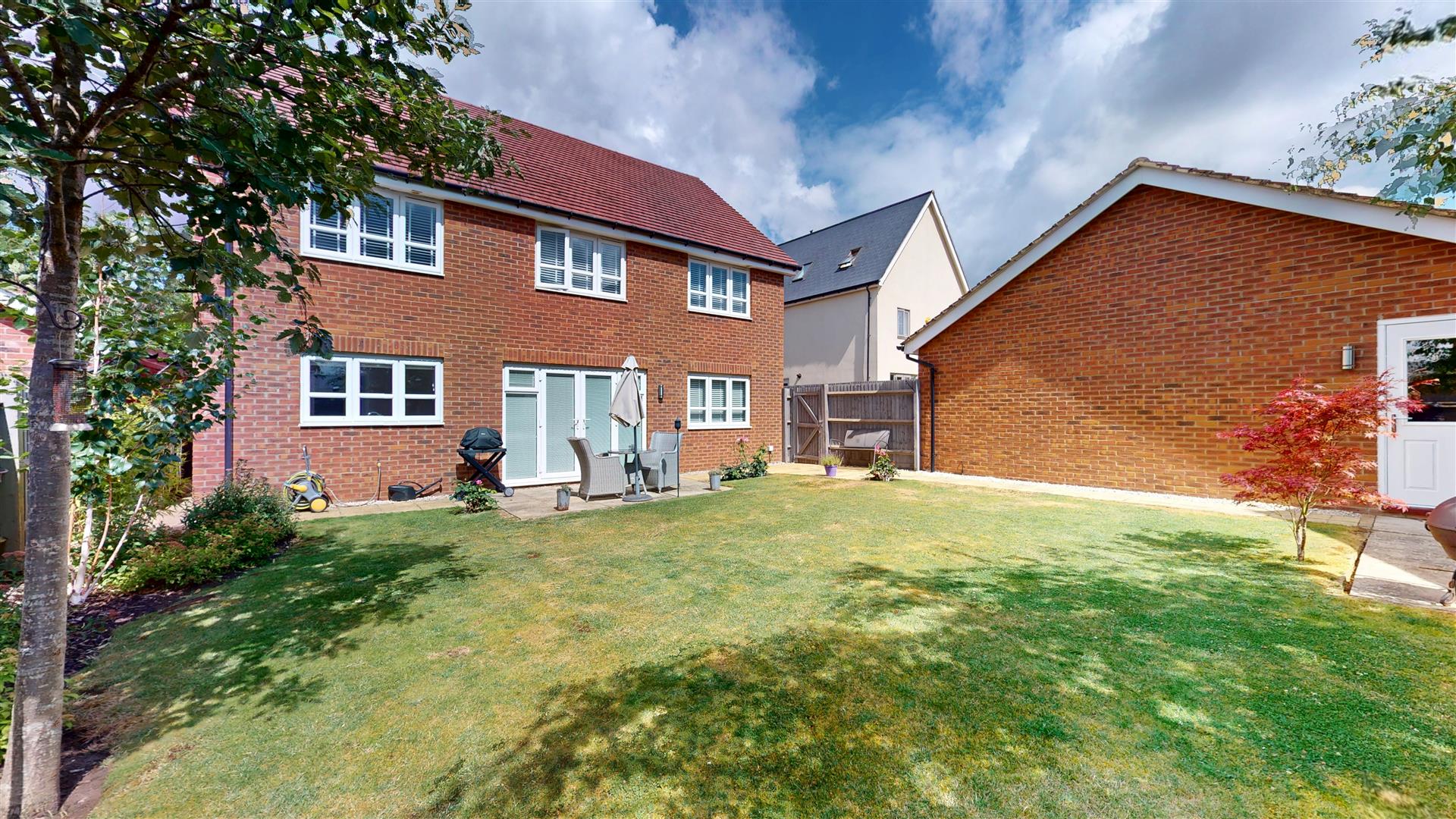 CAULDWELL are proud to offer for sale this exceptional five-bedroom detached residence, located in the highly sought-after Whitehouse area of Milton Keynes — and boasting one of the most substantial driveways in the area.This striking family home is set behind an extensive block-paved driveway, providing ample parking for multiple vehicles — perfect for larger families, visiting guests, or those with a passion for cars. The driveway leads to a detached double garage with twin up-and-over doors, offering further space for storage or secure parking.Presented in show home condition throughout, the accommodation begins with a welcoming entrance hall, leading to a generous living room with feature bay window, a separate dining room, and a versatile study/home office. A contemporary downstairs cloakroom adds further practicality.The heart of the home is the stunning kitchen/family breakfast room, beautifully finished and ideal for both everyday living and entertaining. A separate utility room provides convenient additional space.Upstairs, you will find five double bedrooms, offering flexibility for growing families. The principal bedroom and guest bedroom both benefit from luxury en suite shower rooms, while the remaining bedrooms are served by a stylish family bathroom.Outside, the property continues to impress with attractive low maintenance front garden and a generous well-maintained, rear garden, perfect for relaxing or hosting.Homes of this calibre — especially with such exceptional parking and curb appeal — are rarely available in this location.Early viewing is highly recommended.Estate Fee: £120 per annumCouncil tax band: FEnergy rating: B