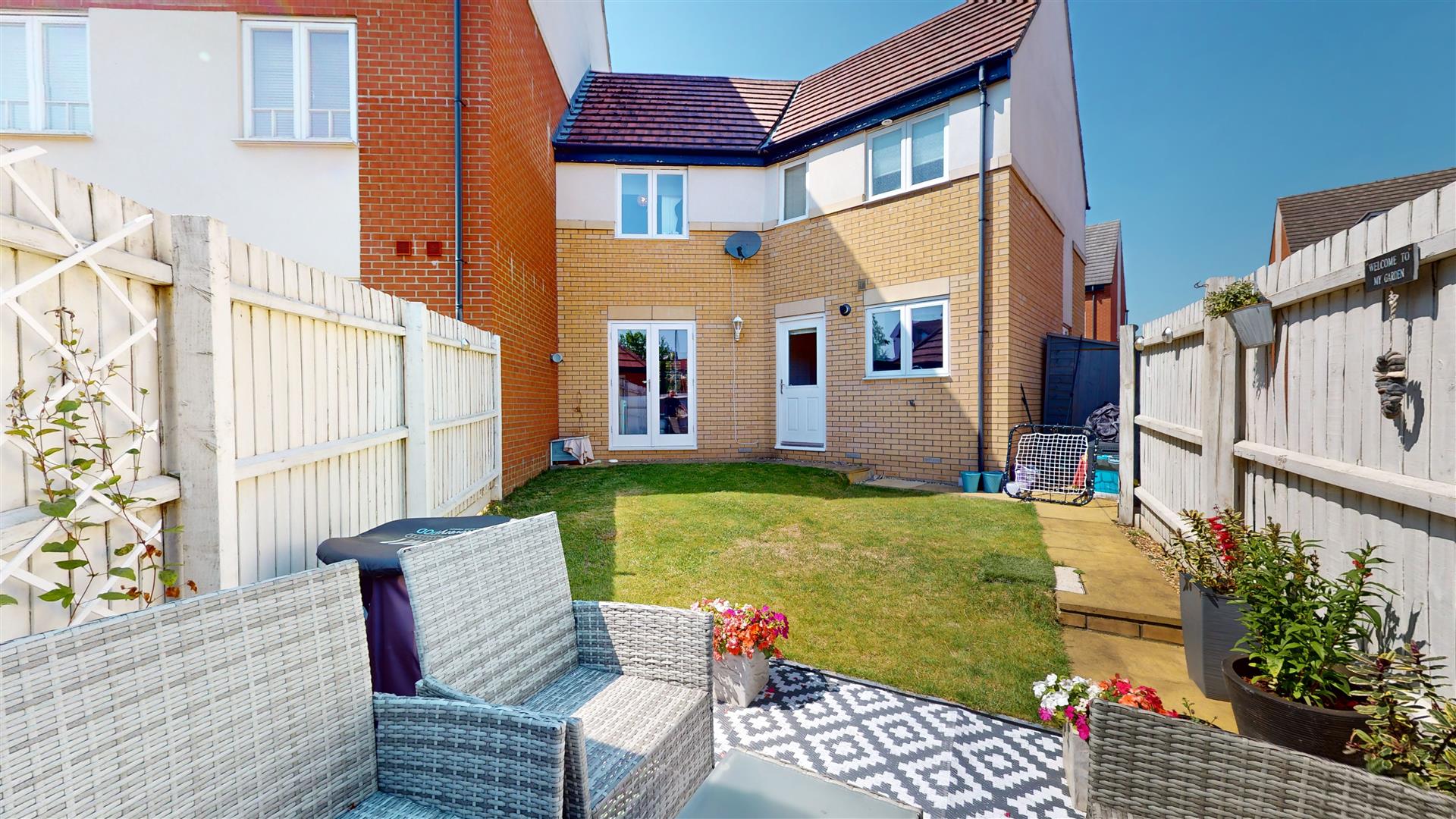 Enclosed and laid to lawn with wooden fence surround. Gated side access. Patio area. Outside tap and lighting. Two allocated parking spaces.